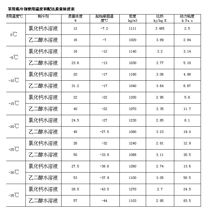 下面是各種冰水機(jī)用低溫載冷劑的配置表,相關(guān)文章請到