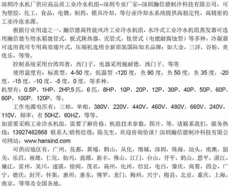 深圳低溫工業(yè)冷水機(jī)組哪個(gè)品牌好,深圳哪里有好的供應(yīng)商,推薦【深圳低溫工業(yè)冷水機(jī)組供應(yīng)商首先深圳瀚信德制冷】,低溫冷水機(jī)組多少錢一臺(tái),請(qǐng)咨詢深圳瀚信德制冷,深圳瀚信德制冷是一家專業(yè)致力于低溫制冷機(jī)組,低溫工業(yè)冷水機(jī)組,低溫冷凍機(jī)組,研發(fā),生產(chǎn),銷售,安裝,維護(hù),配件供應(yīng)為一體的綜合性服務(wù)的制冷設(shè)備生產(chǎn)廠家,瀚信德制冷只銷售高端品質(zhì)工業(yè)冷水機(jī)組,所以是一種優(yōu)質(zhì)品牌工業(yè)冷水機(jī)組。